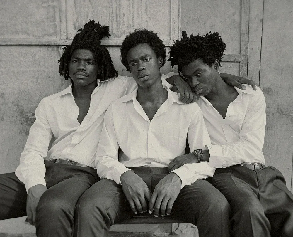 A tender black-and-white portrait capturing platonic male intimacy. Limited edition of 3.